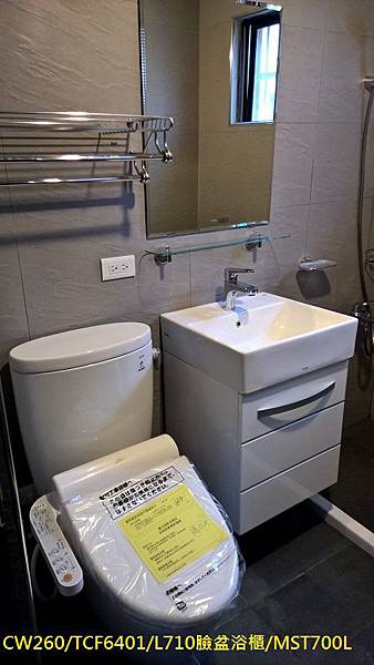(實況三 : 整個內部的安裝完成圖, 產品包括TOTO省水 水龍捲馬桶CW260, TOTO免治馬桶蓋TCF6401, TOTO臉盆浴櫃組L710,TOTO臉盆龍頭TWL701,TOTO沐浴龍頭TWM801及配件等,TOTO馬桶可以省下不少水用量唷)