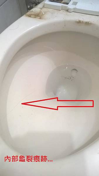 (實況四 : 而馬桶竟然在通了之後 每次沖就會從這個地方漏水了....ㄟ害...原來馬桶遇到冷縮熱脹是會龜裂的喔)