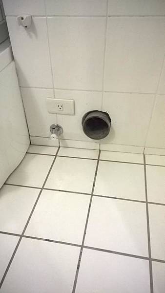(實況一 : 壁排式馬桶,可以明顯看到它的排糞管就在牆壁上)